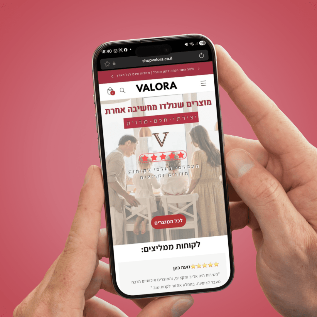 "VALORA לא מאכזבת! המשלוח הגיע מהר המוצר הגיע עטוף היטב, והשירות ללקוח היה מצוין. מרוצה מאוד מהקנייה."